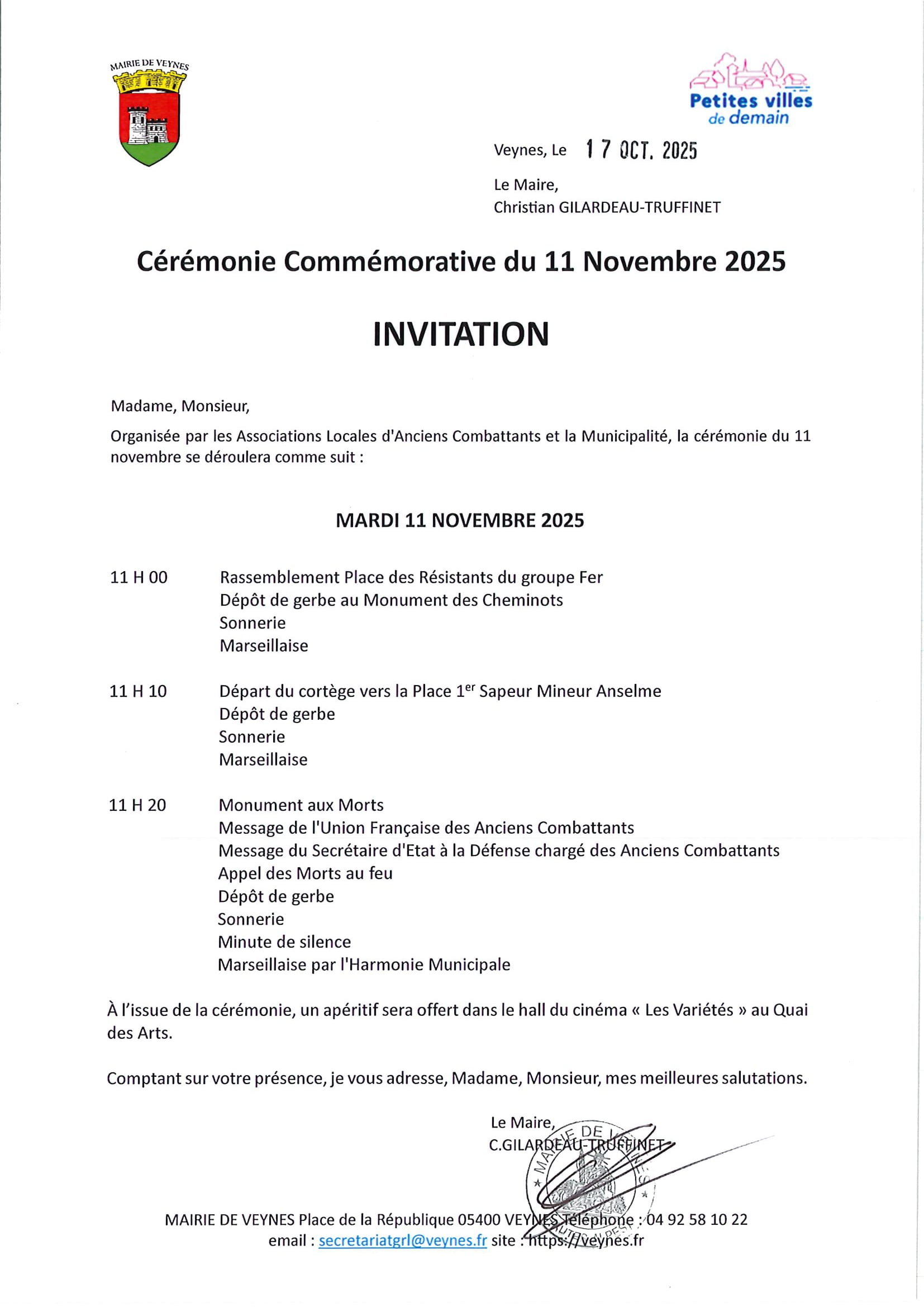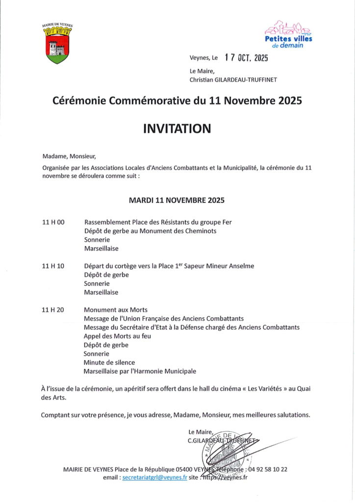 Cérémonie commémorative du 11 novembre 2025 20 octobre 2025 Non Par Mairie de Veynes Repas des Aînés ou Colis du CCAS Le 31/10 | HALLOWEEN