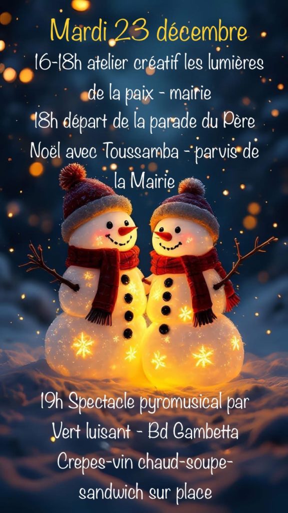 Le 23/12 | Animations de Noël 17 décembre 2025 Non Par Mairie de Veynes COMMUNIQUÉ À LA POPULATION Réglementation de la circulation et du stationnement – Lumières de Noël